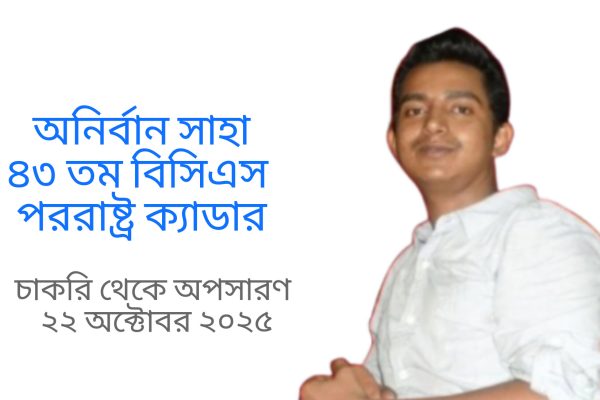 ৪৩তম বিসিএসের পররাষ্ট্র ক্যাডার থেকে অপসারিত হয়েছেন বুয়েট ছাত্রলীগের সাবেক নেতা অনির্বাণ সাহা। বুধবার (২২ অক্টোবর) পররাষ্ট্র মন্ত্রণালয়ের জারি করা এক প্রজ্ঞাপনে এ তথ্য জানানো হয়েছে।প্রজ্ঞাপনে বলা হয়েছে, ৪৩তম বিসিএস (পররাষ্ট্রবিষয়ক) ক্যাডারে নিয়োগপ্রাপ্ত শিক্ষানবিশ সহকারী সচিব অনির্বাণ সাহাকে বাংলাদেশ সিভিল সার্ভিস নিয়োগ বিধিমালা, ১৯৮১-এর ধারা ৬(২)(এ) অনুযায়ী সরকারি চাকরি থেকে অপসারণ করা হলো। সন্ত্রাসের দায়ে…